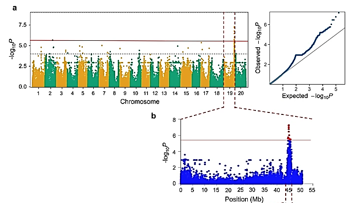 Figure: GWAS signal, haplotype block analysis of qPH19, and haplotype effect for plant height. (Bhat et al. 2022)